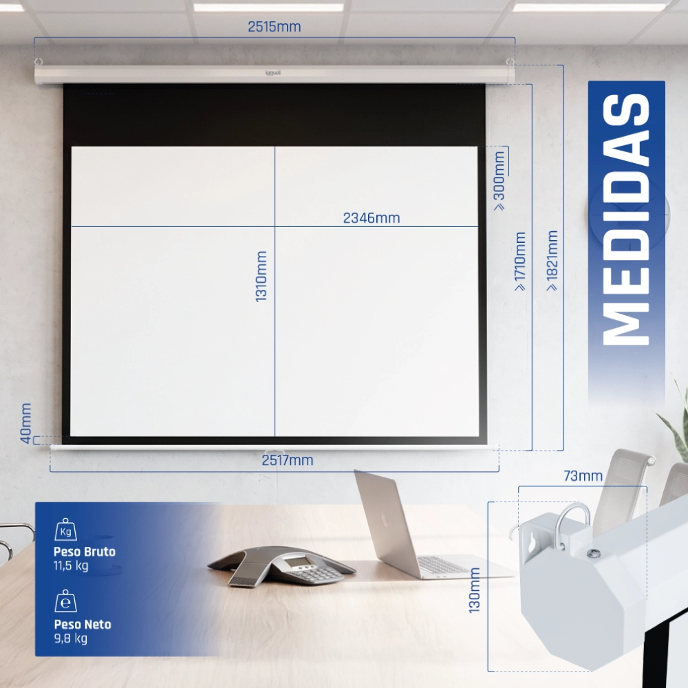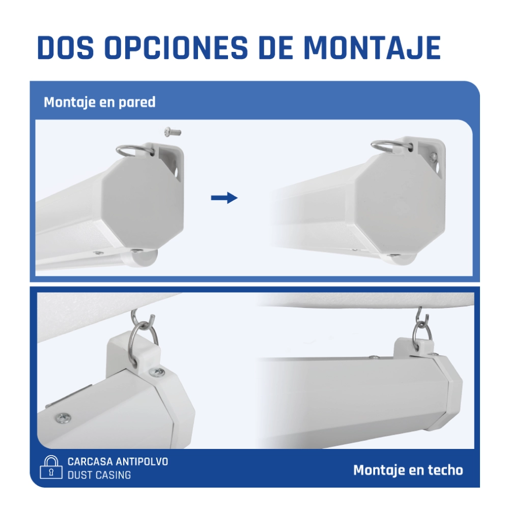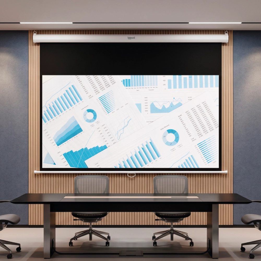 Usos - Pantalla de proyección para techo o pared, indicada para todo tipo de proyecciones